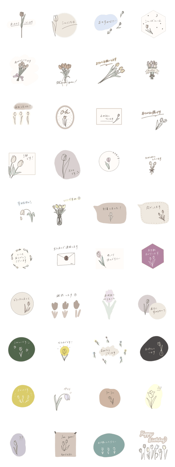 | スタンプ説明 | 手書きチューリップの敬語スタンプです。 韓国 使える敬語 シンプル くすみカラー |