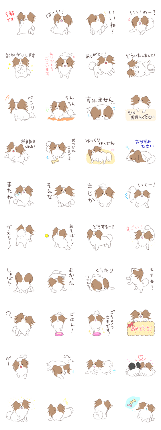 日常で使いやすい、ゆるめのパピヨン犬スタンプです。