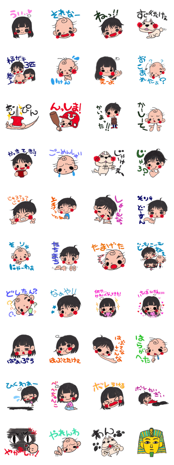 ひな・まさ・れん時々めいちゃんの日常会話を似顔絵でスタンプにしました。