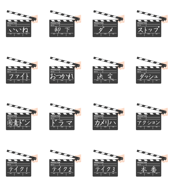 映画やテレビドラマの撮影で使う道具をスタンプにしました。