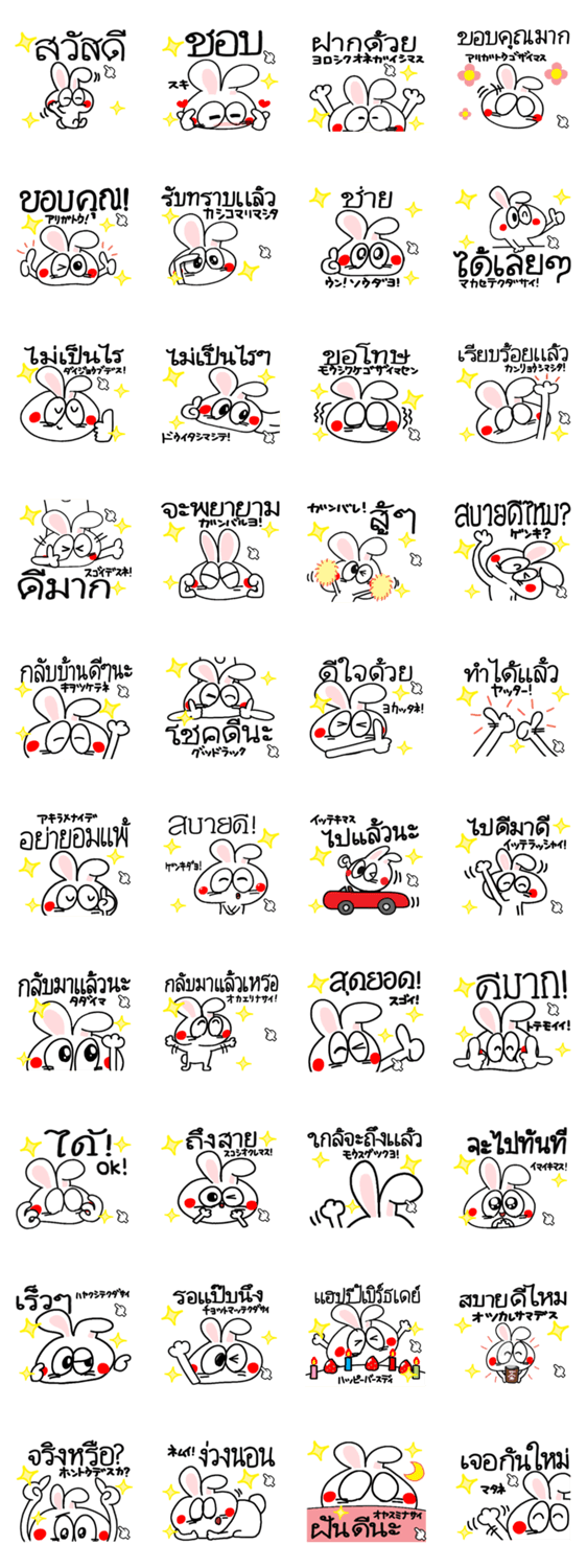 | スタンプ説明 | ウサギの可愛いリアクション。(タイ語&日本語の勉強) |