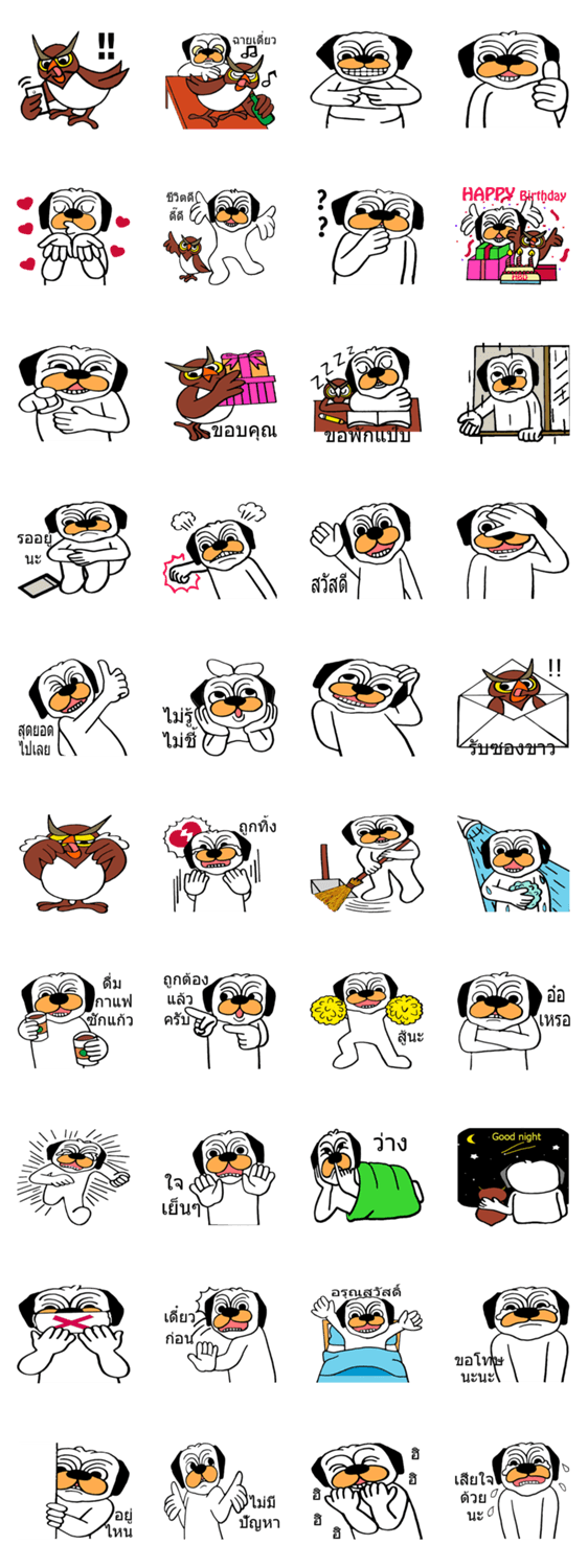 Little Bull dog & Owl Owl Best friends 2 -LINEスタンプマニア