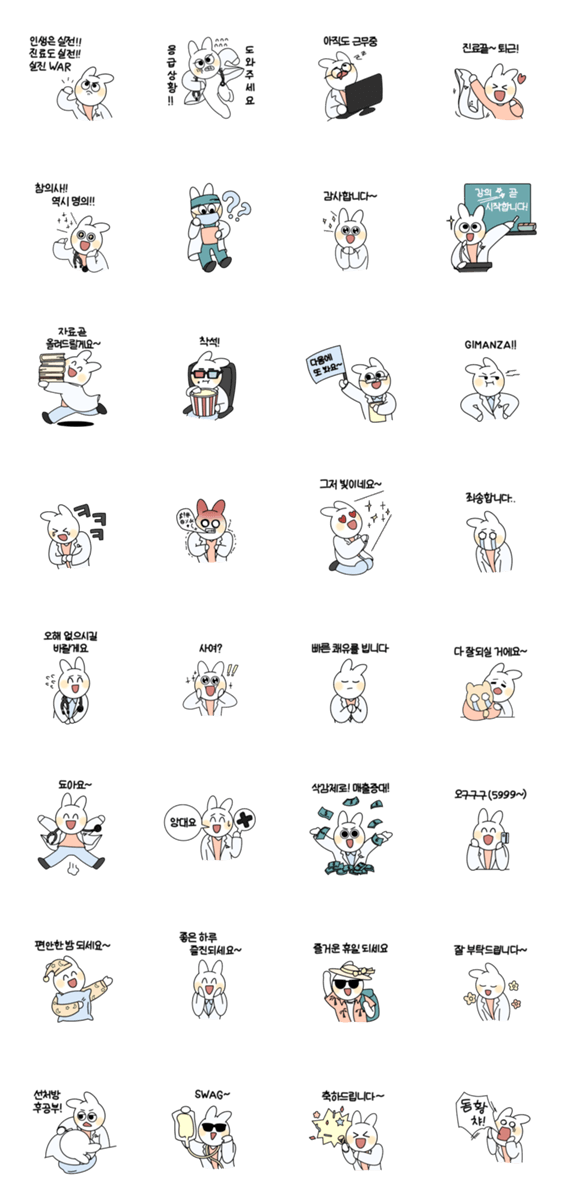 | スタンプ説明 | 医者の感情を表現する感性の絵文字. 可愛くてユーモラスなウサギ、本当の! 実力もあって患者さんの心をおさえる医師、実陣の! たくさん愛してください~ |