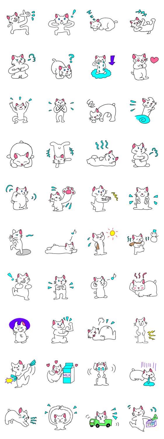 白ネコのあいうえお・・・ってるスタンプ
