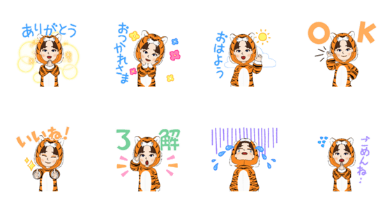 スタンプ説明 タイガー着ぐるみ女の子。基本挨拶編。