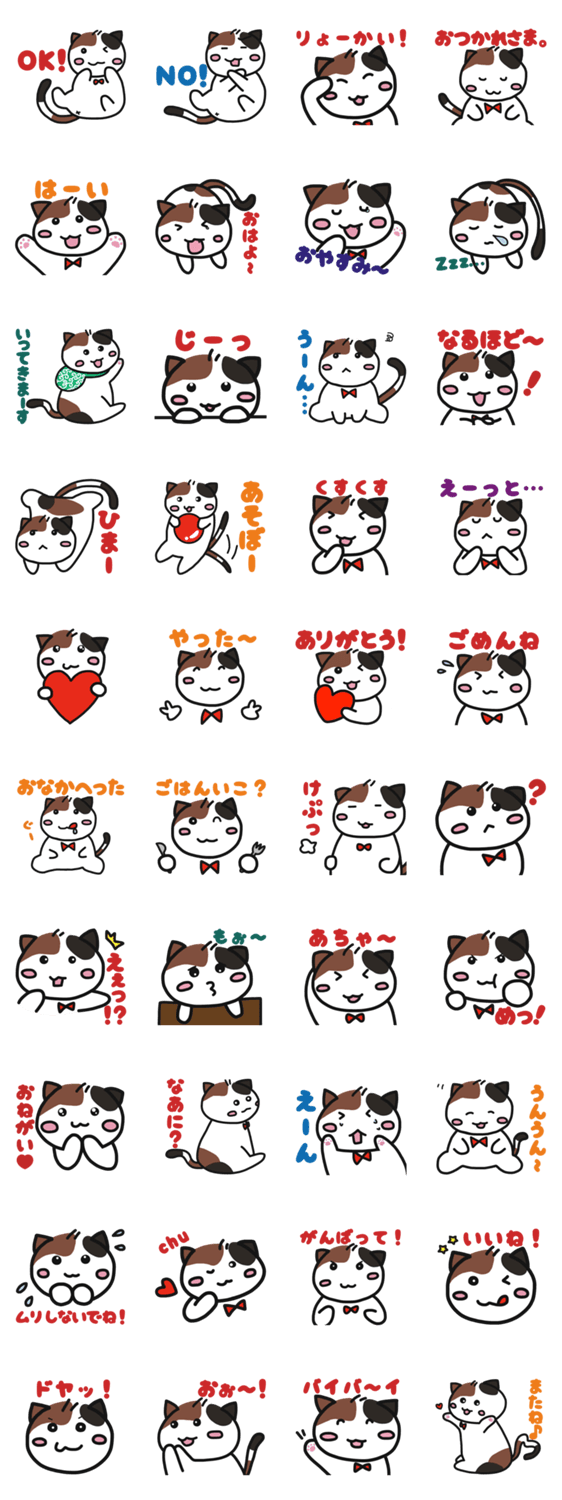 | スタンプ説明 | ゆるくて可愛いみけねこのスタンプです♪毎日使える言葉をまとめました! |