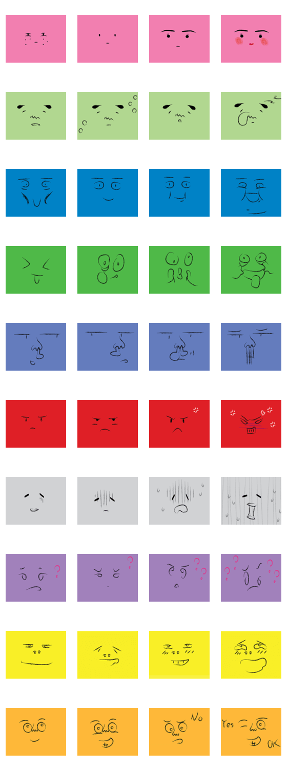 | スタンプ説明 | Different face sticker, Each character have four state. Enjoy! =] |