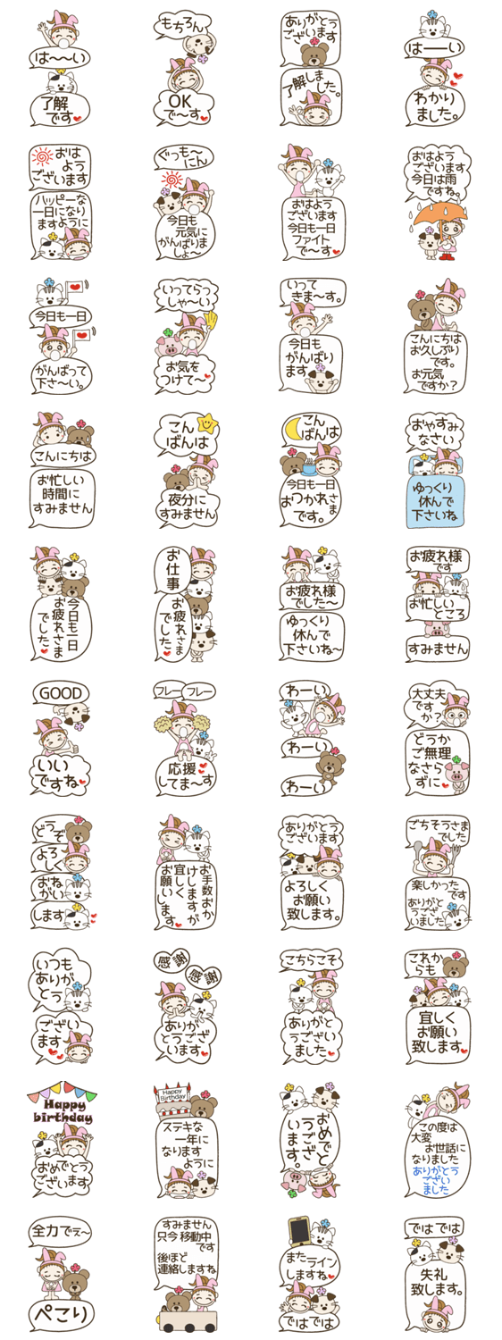 ポニーテールの大人女子、ウサギおちゃめと仲間達(猫・犬・くま・ぶたさん)吹き出しのBIGな長文敬語です。毎日使えるメッセージ、挨拶、返事、お祝い、誕生日、応援など ※このスタンプはトークルームで大きく表示されるBIGスタンプです。