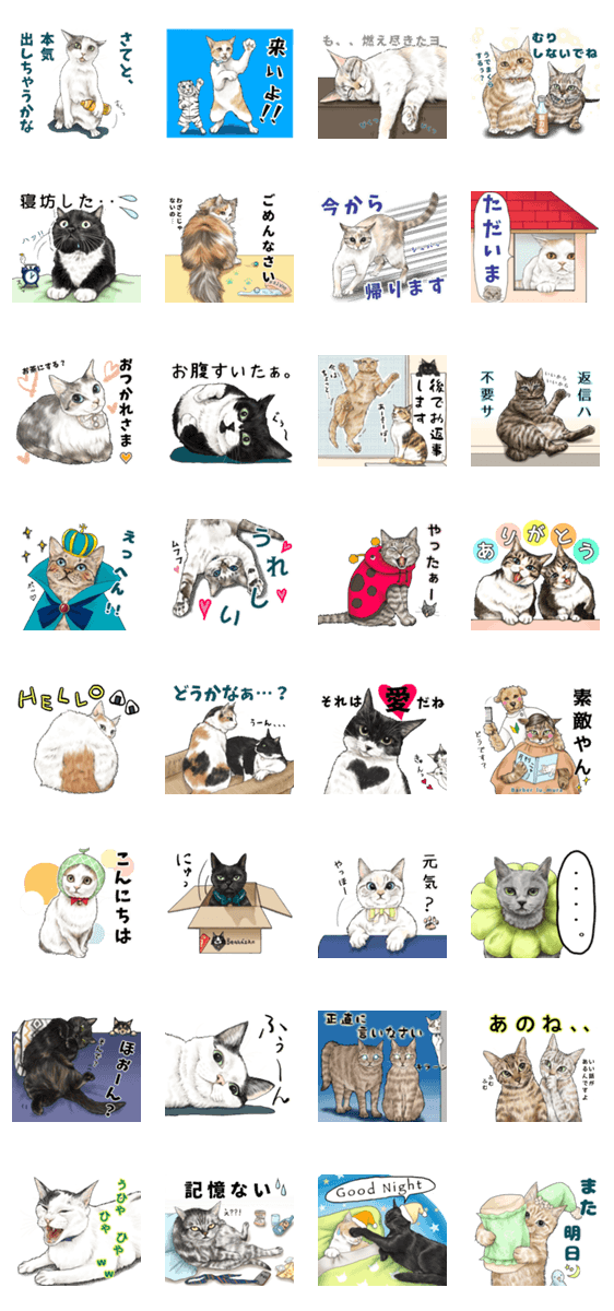 | スタンプ説明 | 猫好きのための、猫にまみれたスタンプ第2弾です。普段使いやすい言葉多めです。 |