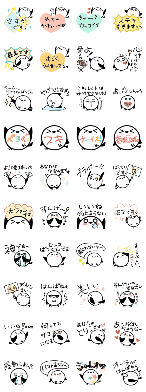 まんまるなとりさんによる、たくさんの褒め言葉で癒されるスタンプのセットです!