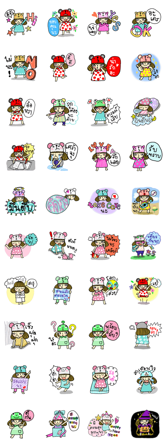 | スタンプ説明 | "Nu Baew" is a little girl , she lovely, funny and always in favorite animal hat. Let's enjoy your daily chat and fun with her beautiful world. |