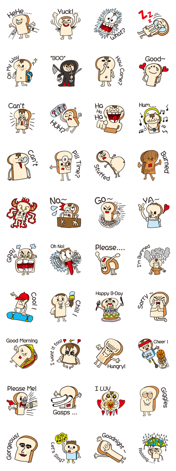 | スタンプ説明 | Created by 8 year old Jasper,from Taipei, inspired by the toast his father makes him for breakfast, here comes Toast Man! Here to make your chat even "toasty" |