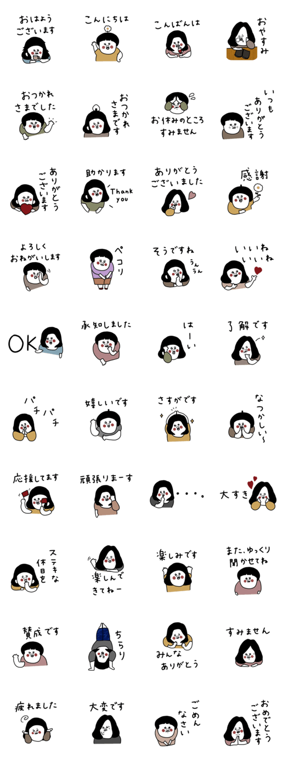 | スタンプ説明 | シンプルで大人の女性でも使いやすいスタンプです。大人の日常。敬語入り。 |