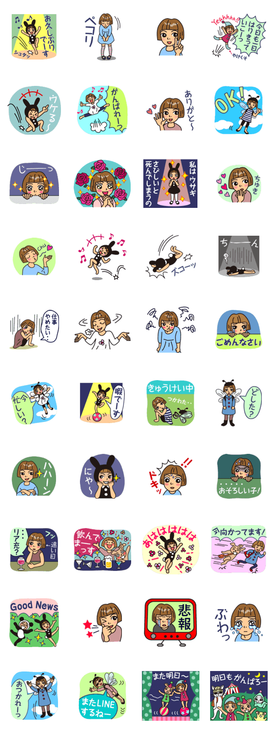 | スタンプ説明 | dokabasa歌劇団の看板女優、妖精のマサラチャイが舞台で日常で大人女子の気持ちを表現します。いくつになっても乙女心を忘れない女性の方におススメです。 |