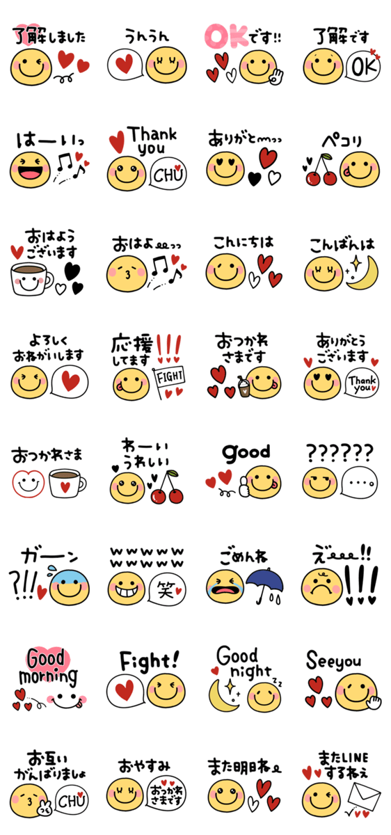 みんなが使える表情豊かなスマイル日常会話♡ /かわいい/ハート多めで大人可愛いデカ文字スタンプです。