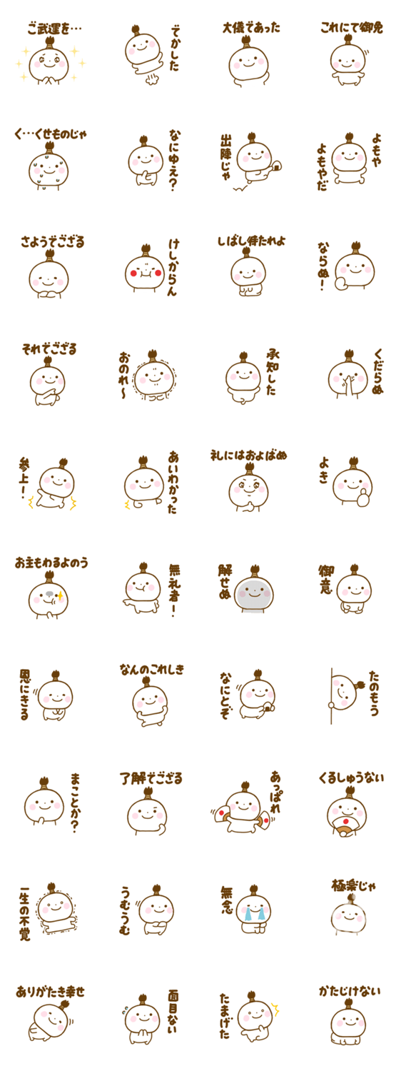 Naoyのゆる~く、かわいい、毎日武士、侍サムライ語で使えるスマイルくんのスタンプだよ(*‘ω‘ *)
