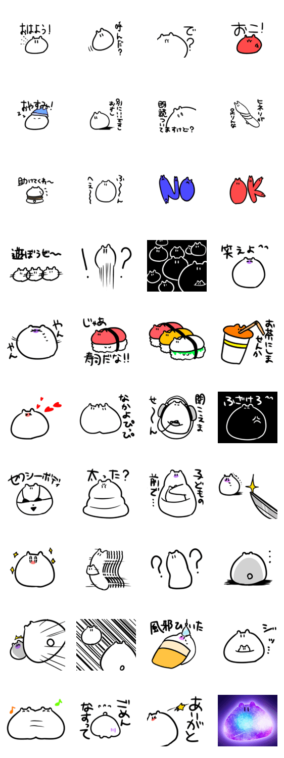 有袋類という以外設定の決まっていない宇宙並みに謎多き生き物のスタンプです。感情表現が下手な作りになっているのでぜひ感情表現の上手な方に使っていただきたいです。