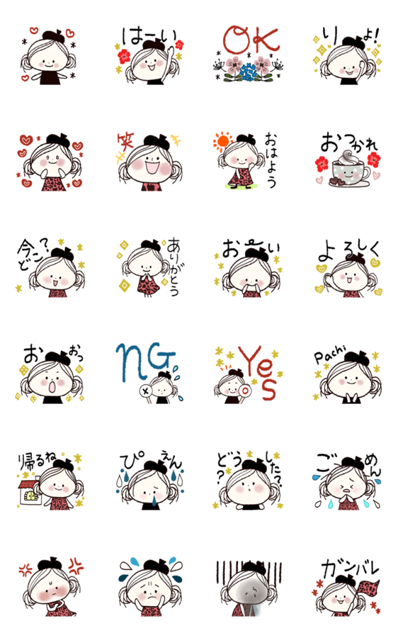 可愛いイラストで大切な家族やお友達に毎日使える連絡用の動くスタンプです♪ベレー帽/オシャ可愛/大人可愛い/挨拶/日常/ アニメーション/Bnasuko