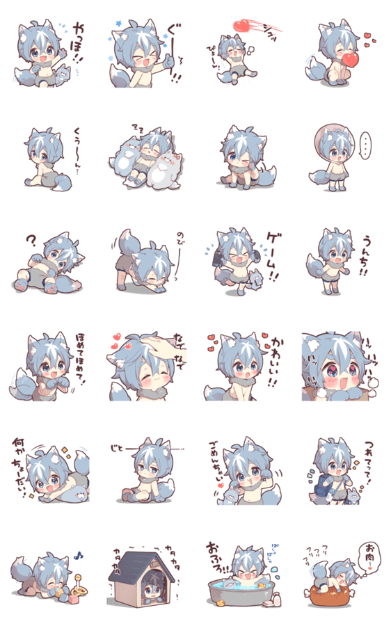 毎日使える元気なオオカミ少年のスタンプ第2弾!仔犬っぽいけどオオカミです!