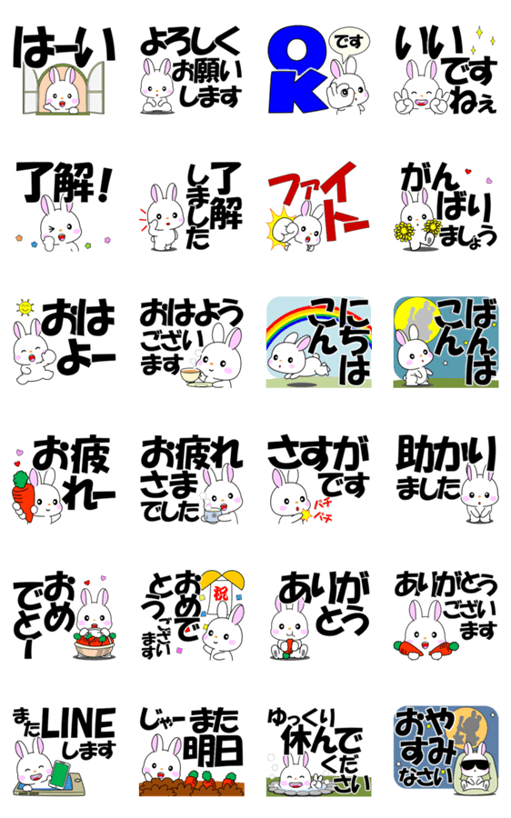 デカ文字が画面に大きく飛び出すウサウサのスタンプです。
