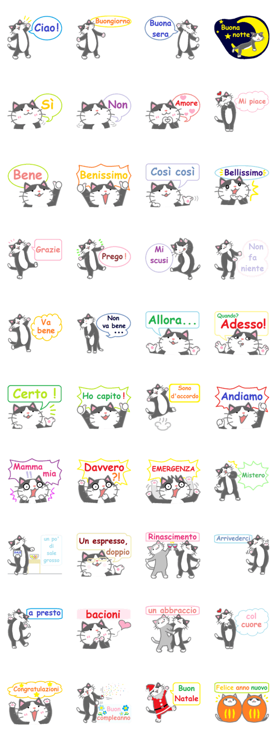 スタンプ説明 イタリア語の日常的に使えるスタンプです。