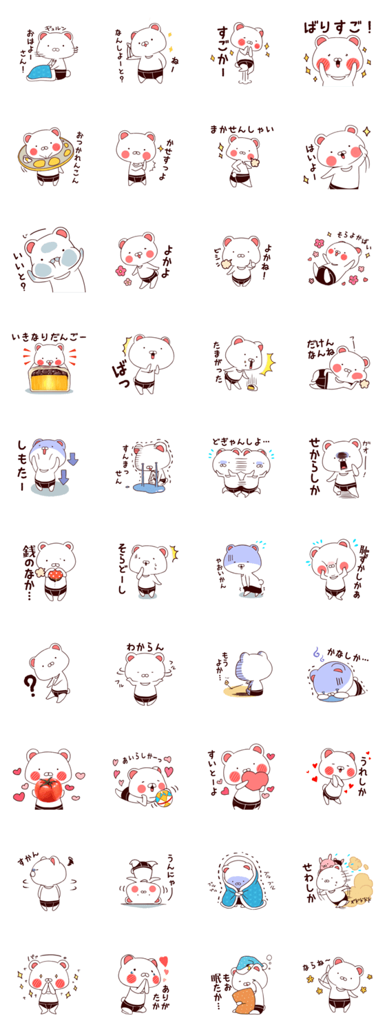 熊本弁を話すブルマを履いたくまのスタンプです。恋人や家族、友達との会話に使ってはいよ!(熊本だけでなく九州弁や福岡・博多弁としても利用可能)