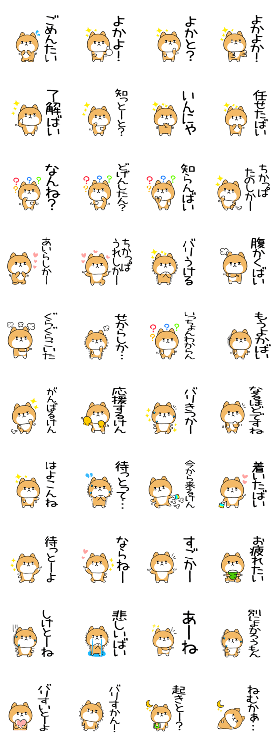 柴犬のデカ文字の博多弁のスタンプです 大文字で読みやすい★毎日使える スタンプ★日常会話スタンプ★もるきゅた 作