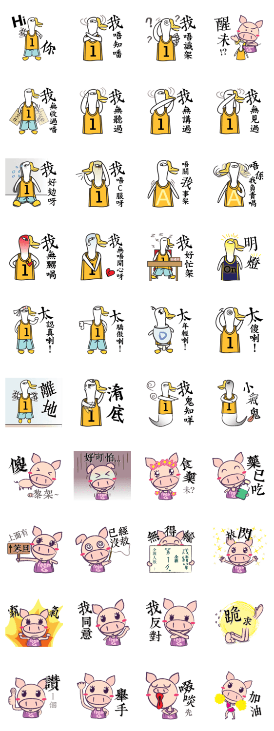 | スタンプ説明 | Duckling is little self-centered. Piggy is very naive & cute. |