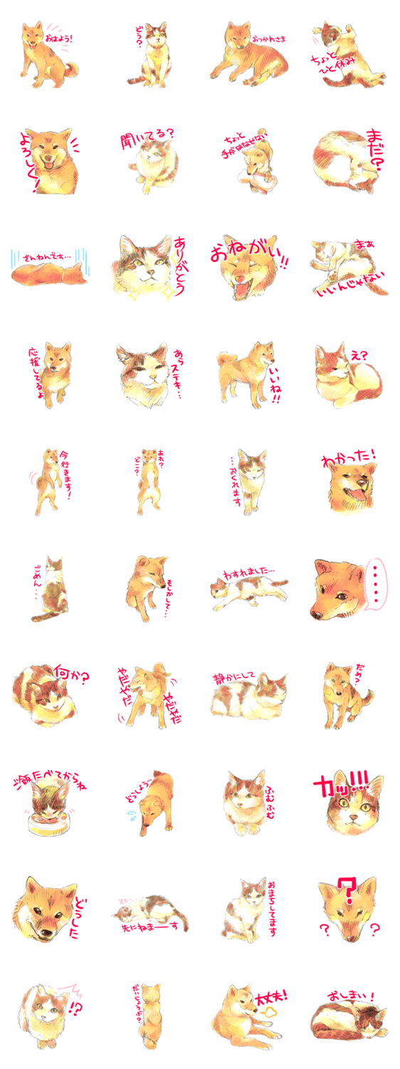 どこにでも居そうな、わんことにゃんこ。さっと会話に使えるセリフだけど、ちょっと目を引くスタンプたちです!