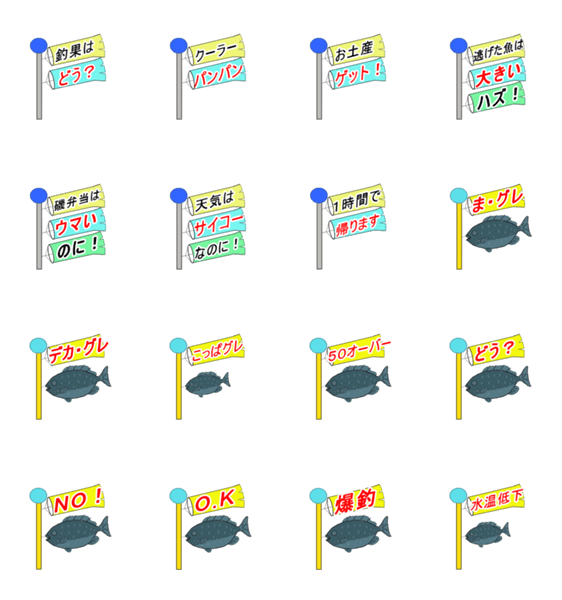| スタンプ説明 | グレ釣りをはじめとした釣り仲間や家族への挨拶や釣果の報告 |