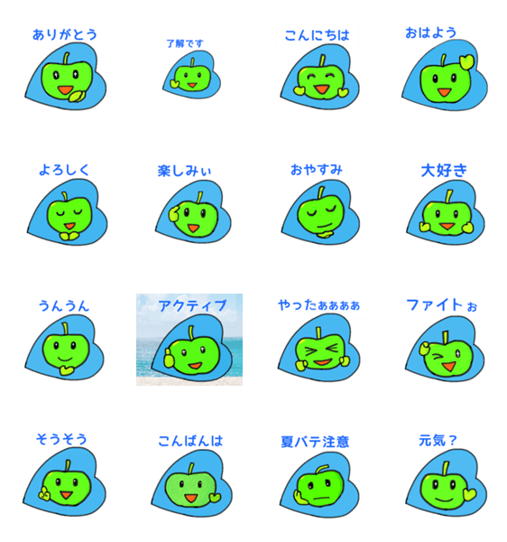 青りんごの涼しげハートフルフェイス -LINEスタンプマニア