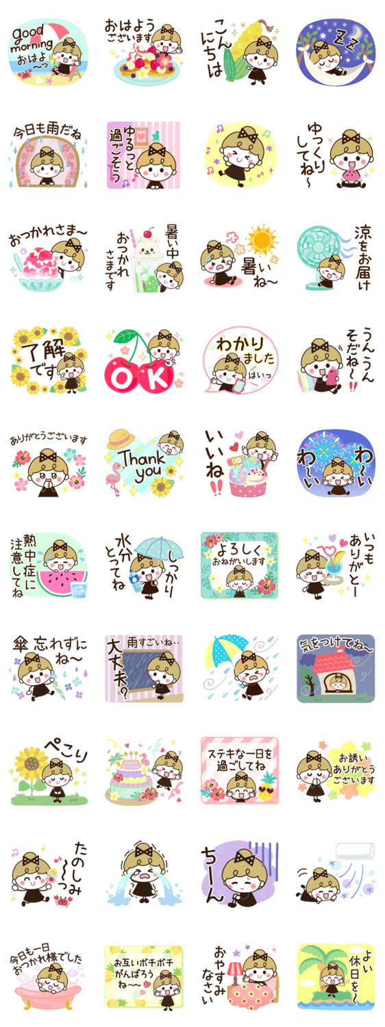 夏だね♡リボンの女の子 -LINEスタンプマニア