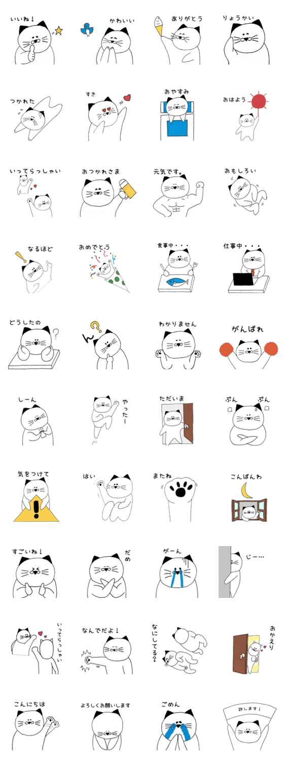 白ネコのあいうえお・・・ってるスタンプ