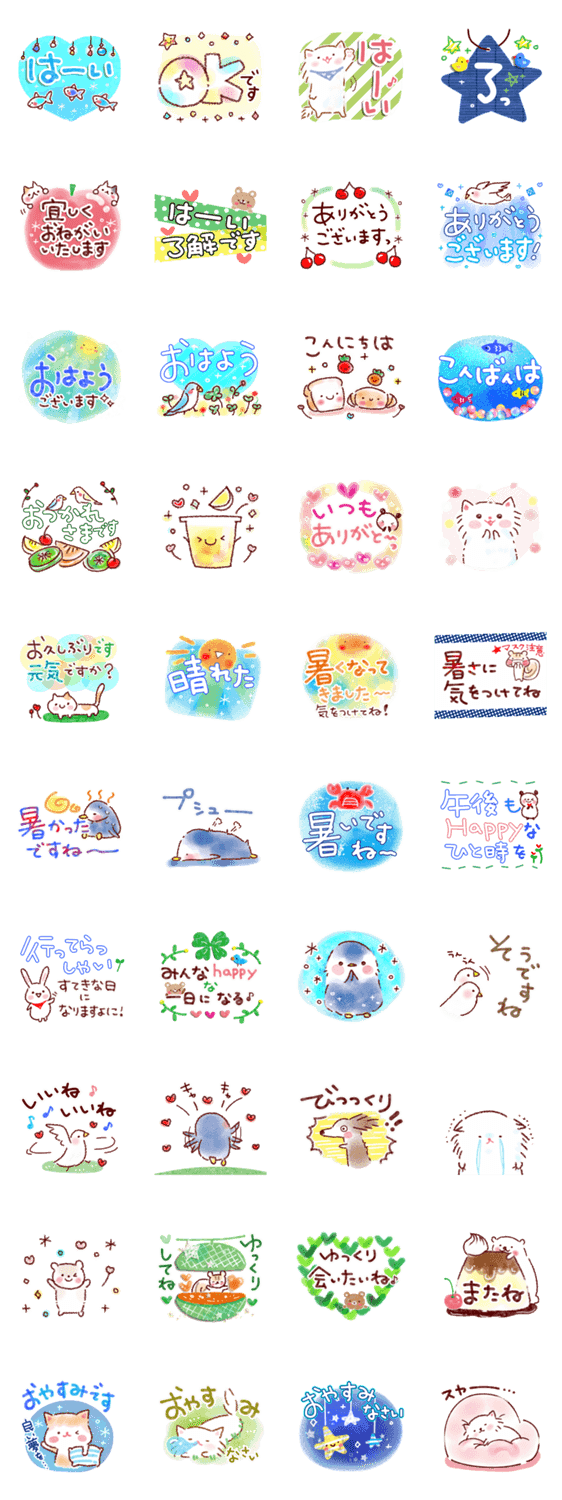 爽やかに使える日常あいさつスタンプです。よく使う言葉は多めに♪敬語もあるので、年上の方や先輩にも使いやすくなっています。