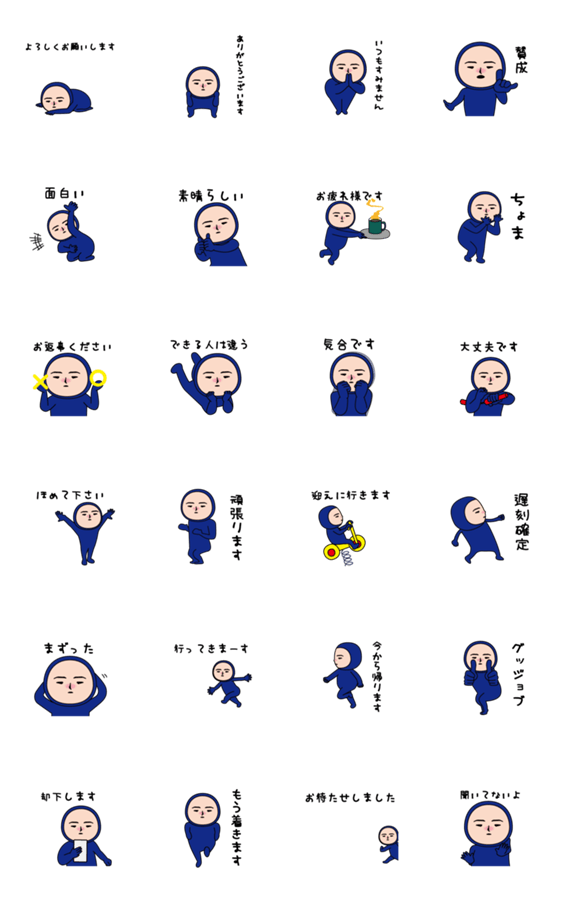 いつもの面白スタンプ(紺タイツ編2)業務連絡、会社、同僚、家族、毎日、使いやすい、わかりやすいのが紺タイツ編です