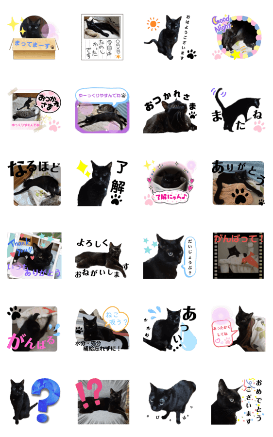 世界一黒いくろねこロンのスタンプです。LINEスタンプメーカーでつくりました。