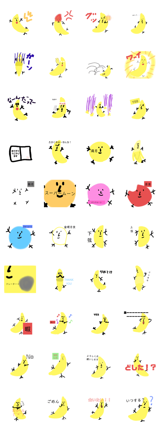 パワー・ロミオのキャラが独立しまた!バナナと月のハーフ、バナナ・ムーンのスタンプがです!