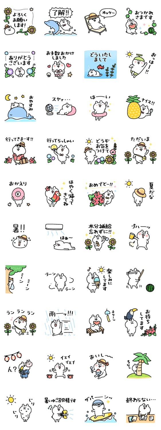 夏に使いやすい!日常のゆるくまさんスタンプ♪