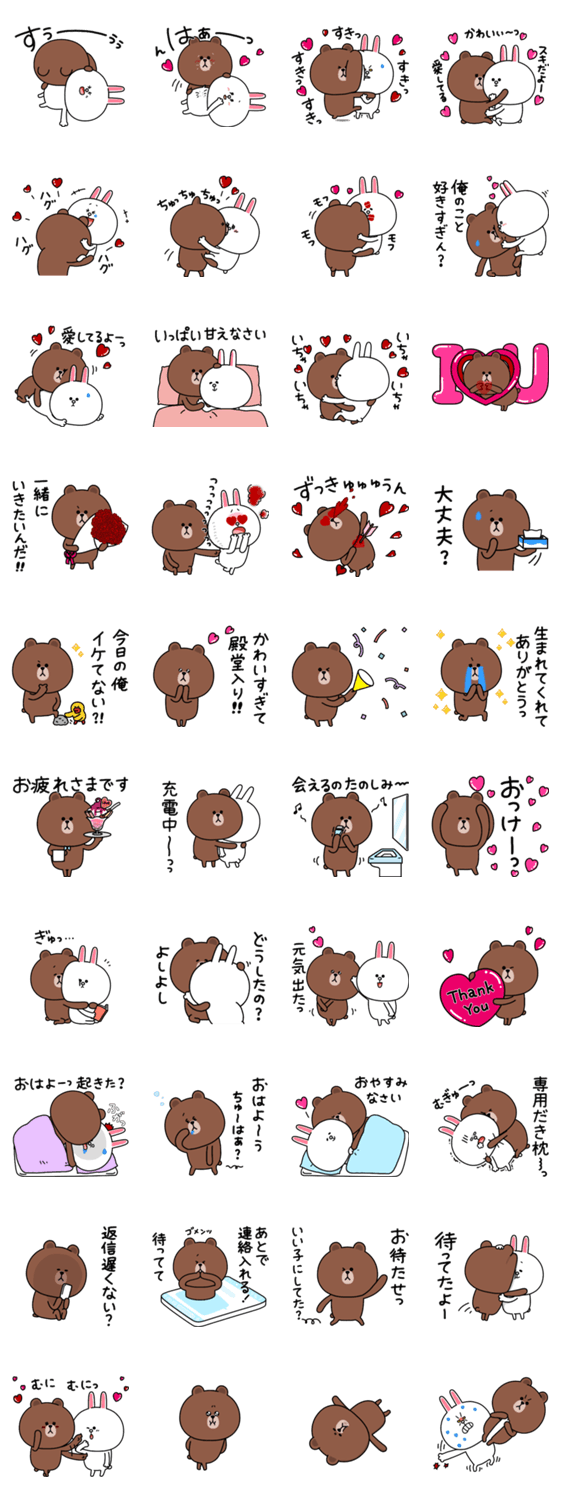 カップルで使える、こちらは彼氏用くま(ブラウン)のスタンプです。彼女用うさぎ(コニー)もあるので、恋人はもちろん、ご夫婦でも使ってみてね!今回サリーはどこかな⁈ ※BROWN & FRIENDS をみんなでつくろう!キャンペーン参加スタンプです