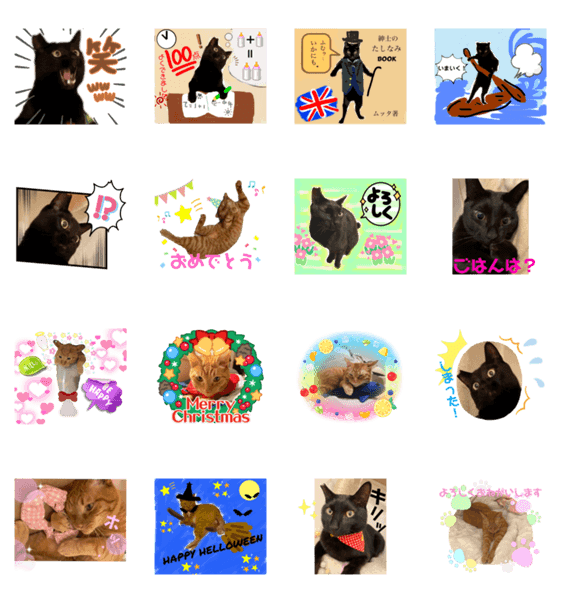 黒猫ムッタと茶猫ヒビトの兄弟スタンプ