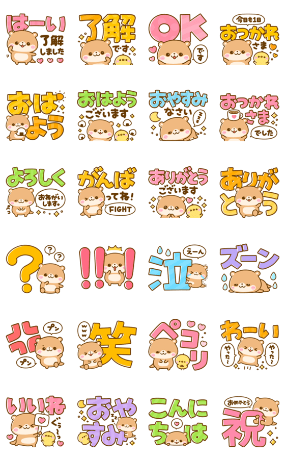 カラフルで見やすいデカ文字が大きく飛び出して動く♡かわうそのポップアップスタンプです。