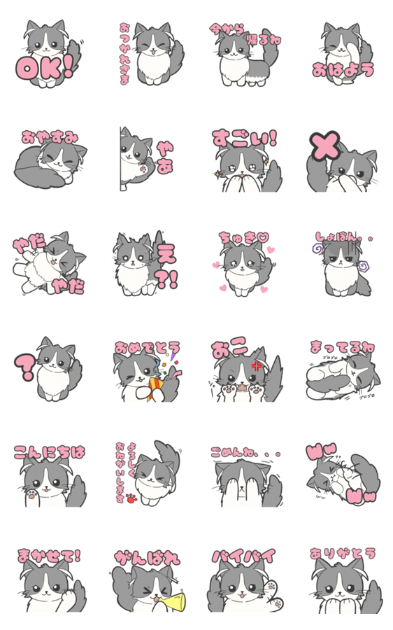 日常会話を詰め込んだ毎日使えるハチワレ猫の”ラヴィちゃん”スタンプです♪