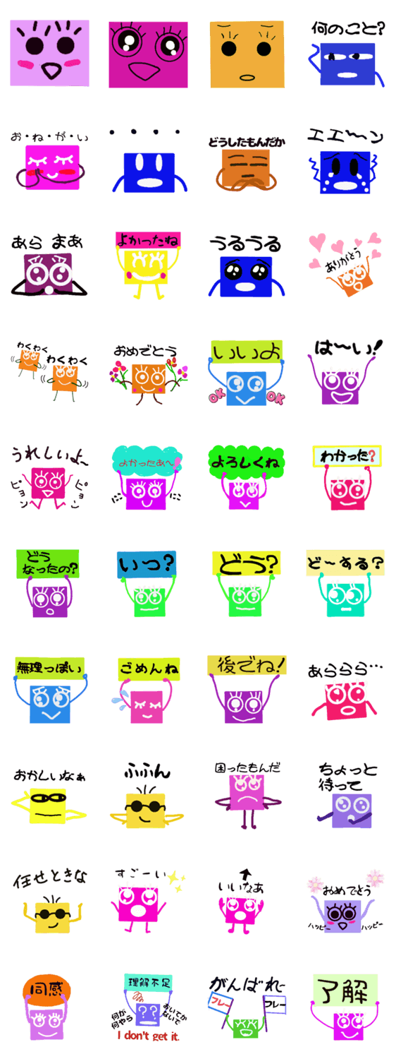 スタンプ説明 ちりんのシンプル四角い仲間達毎日使える