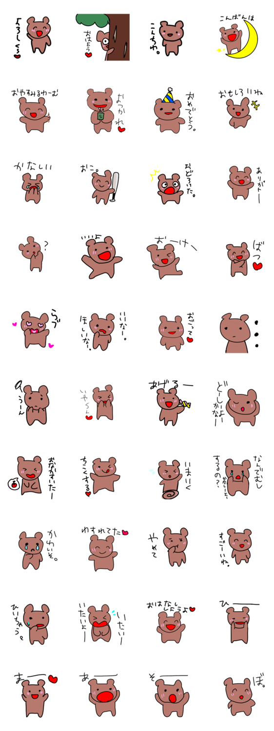 | スタンプ説明 | LINEスタンプメーカーでつくったスタンプです。可愛い可愛いくまやまくますけさんのスタンプです。とてもつかいやすいですね。 |