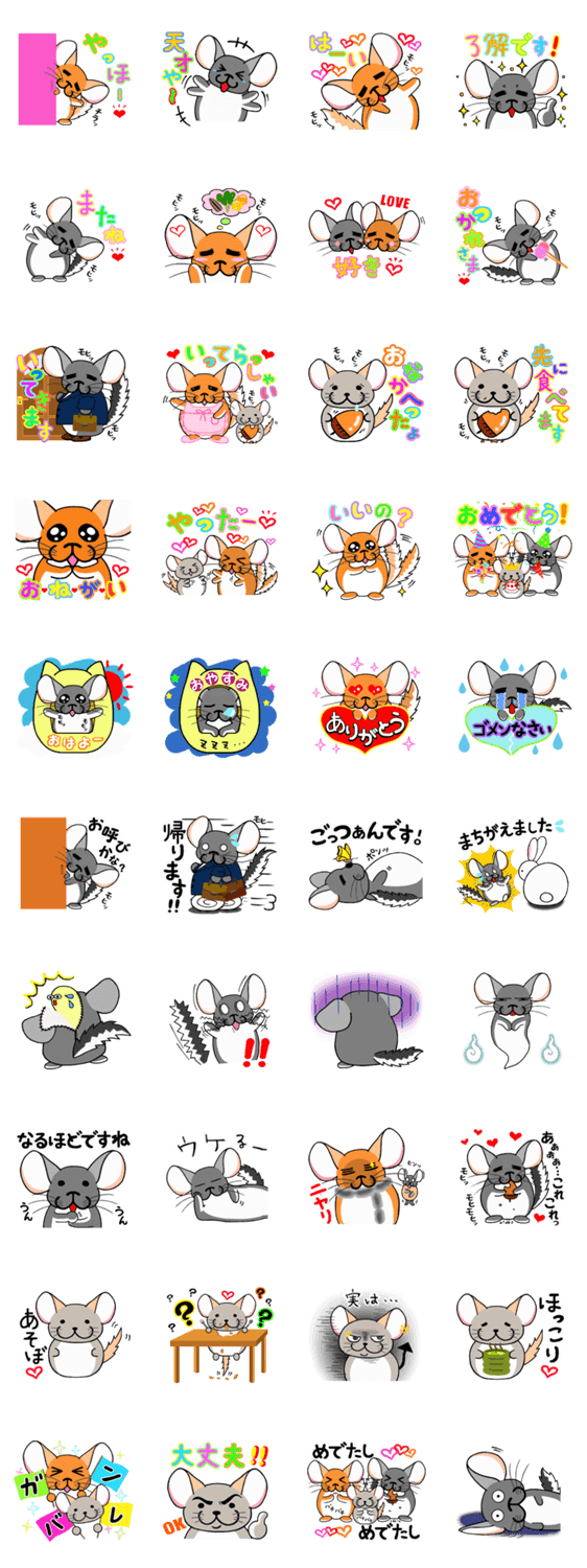 仲良しチンチラ親子の、日常で使える言葉スタンプ!はな(グレー)ひな(シナモン)もんちゃん(べビ)