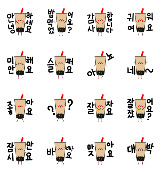 Beverage that lives in Taiwan and speaks Korean well : ) Her name is bubble tea! If you want to practice Korean, use this emoticon