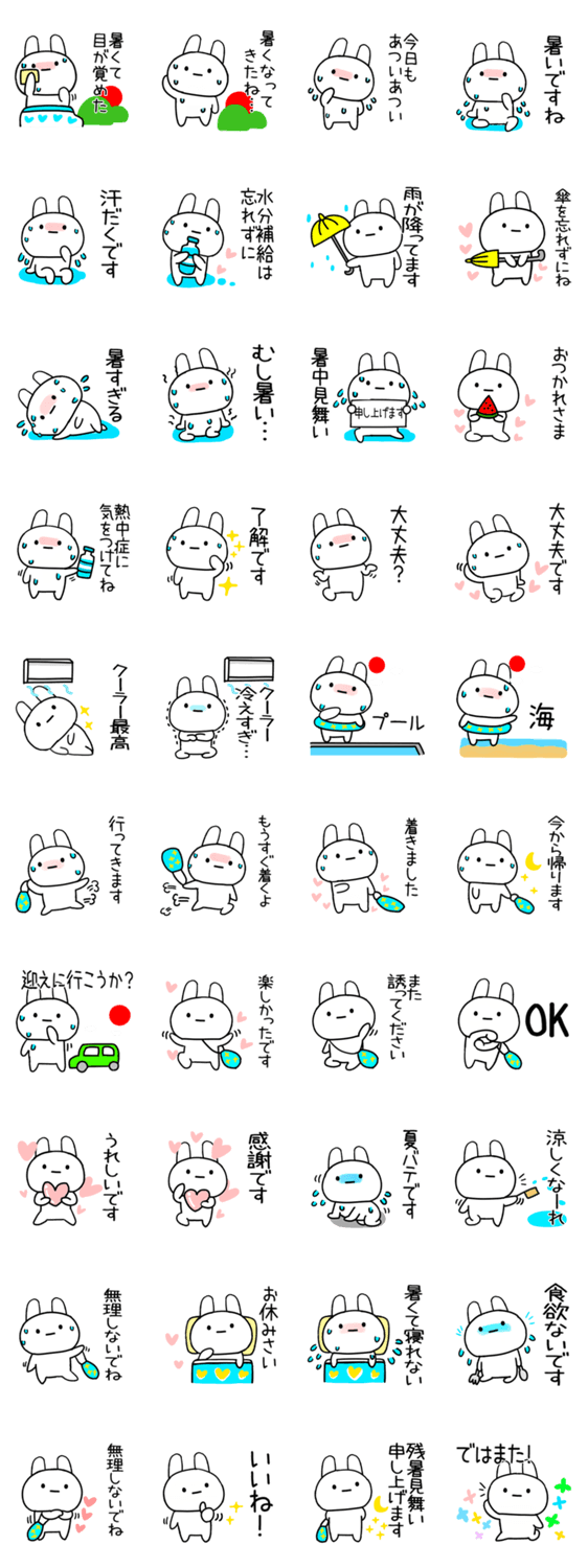 しろまるい 夏スタンプ うさぎスタンプ23 -LINEスタンプマニア