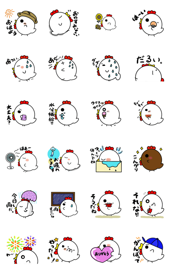 よこむきとりの夏バージョン&基本フレーズありのスタンプです。