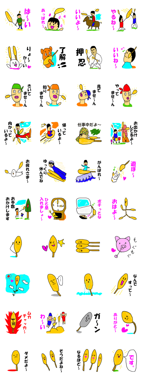 暴れん坊なきな粉棒のスタンプです。ゆるくて使いやすい(笑)。「です」を付けると更に丁寧な言葉になります。サラリーマン、サムライ、主婦、奥方などにおすすめ♪