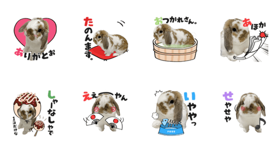ロップイヤーのかわいい男の子うさぎきなこの関西弁スタンプ